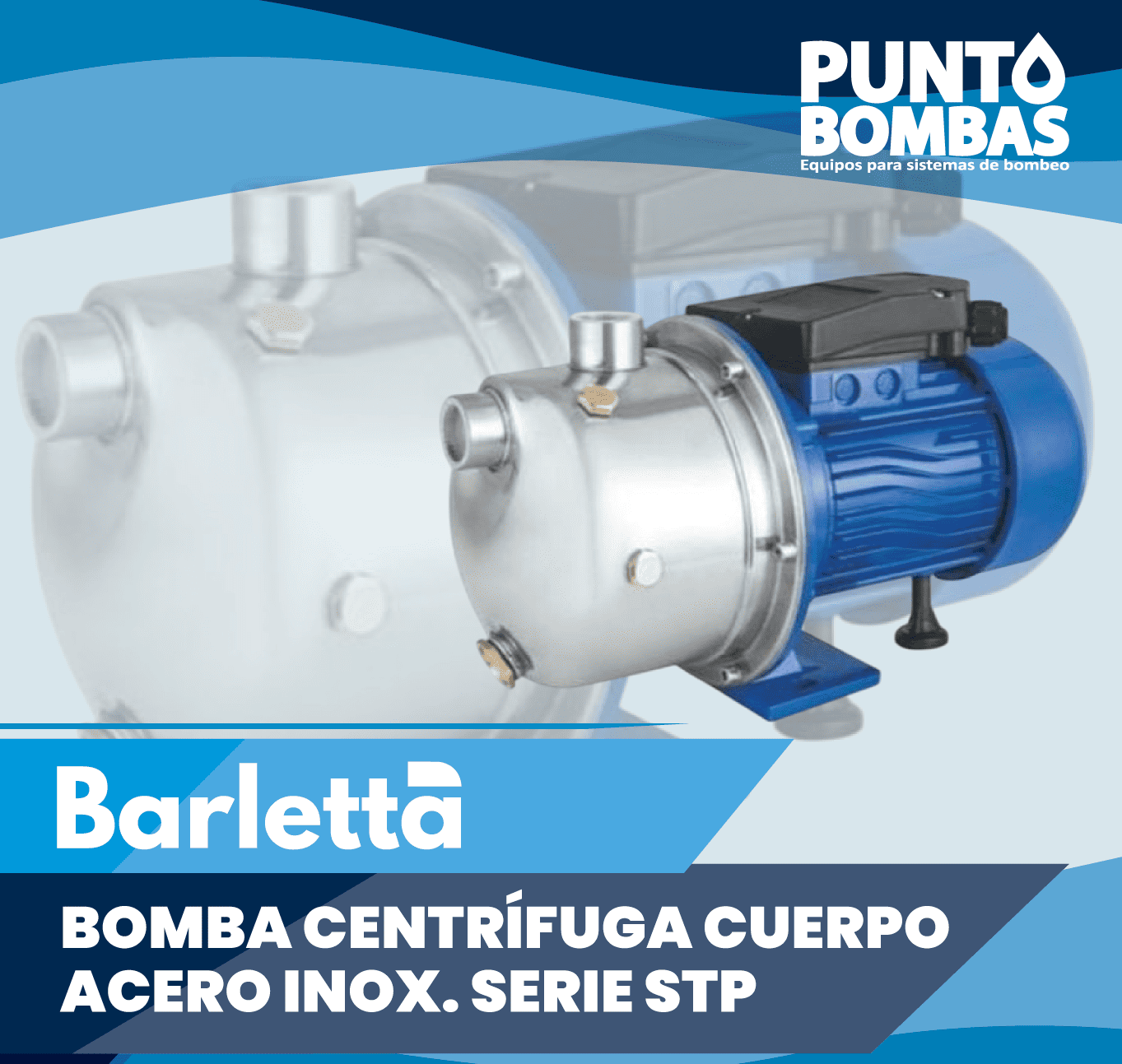 Bomba centrífuga autocebante cuerpo acero inoxidable serie STP marca Barletta