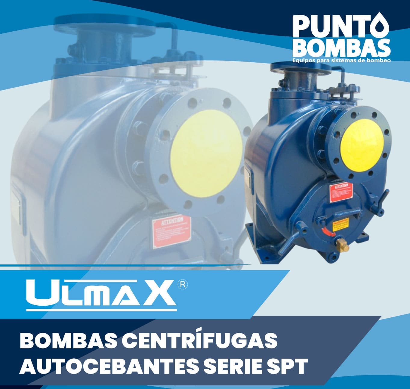 Ficha técnica. DESCRIPCIÓN DEL PRODUCTOLas bombas ULMAX serie SPT son autocebantes de impulsor abierto, aptas para el bombeo de aguas con sólidos en suspensión. Su accionamiento es con motores eléctricos o diesel. Además, son montadas con acoplamiento flexible o poleas y correas en V, sobre bases de acero. Por sus características, estas bombas se utilizan en faenas mineras, construcción, mataderos, industria vitivinícola y en procesos en general.