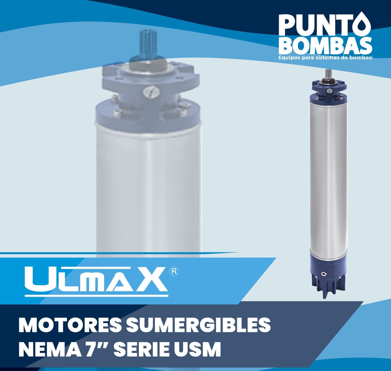 Motor ULMAX sumergible es de alta eficiencia y de un bajo costo de operación. Una de sus grandes características es que es lubricado y refrigerado con agua. Este motor puede ser operado con partidor suave y tiene doble sentido de rotación.