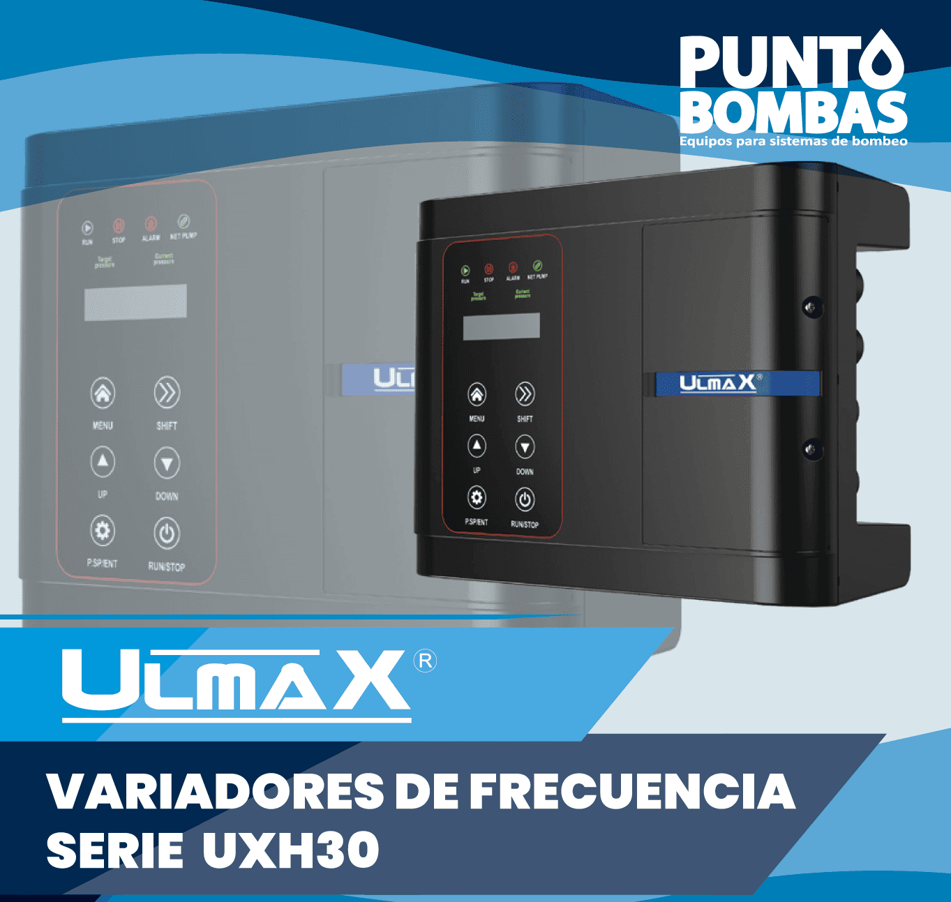 La serie UXH30 de variadores inteligentes para bombas de agua, son productos diseñados para un alto rendimiento en sistemas de bombeo, y podrán ser instalados directamente sobre las bombas y equipos, el cuerpo de los equipos tiene un nivel de protección IP54 y es adecuado para ambientes húmedos y polvorientos.