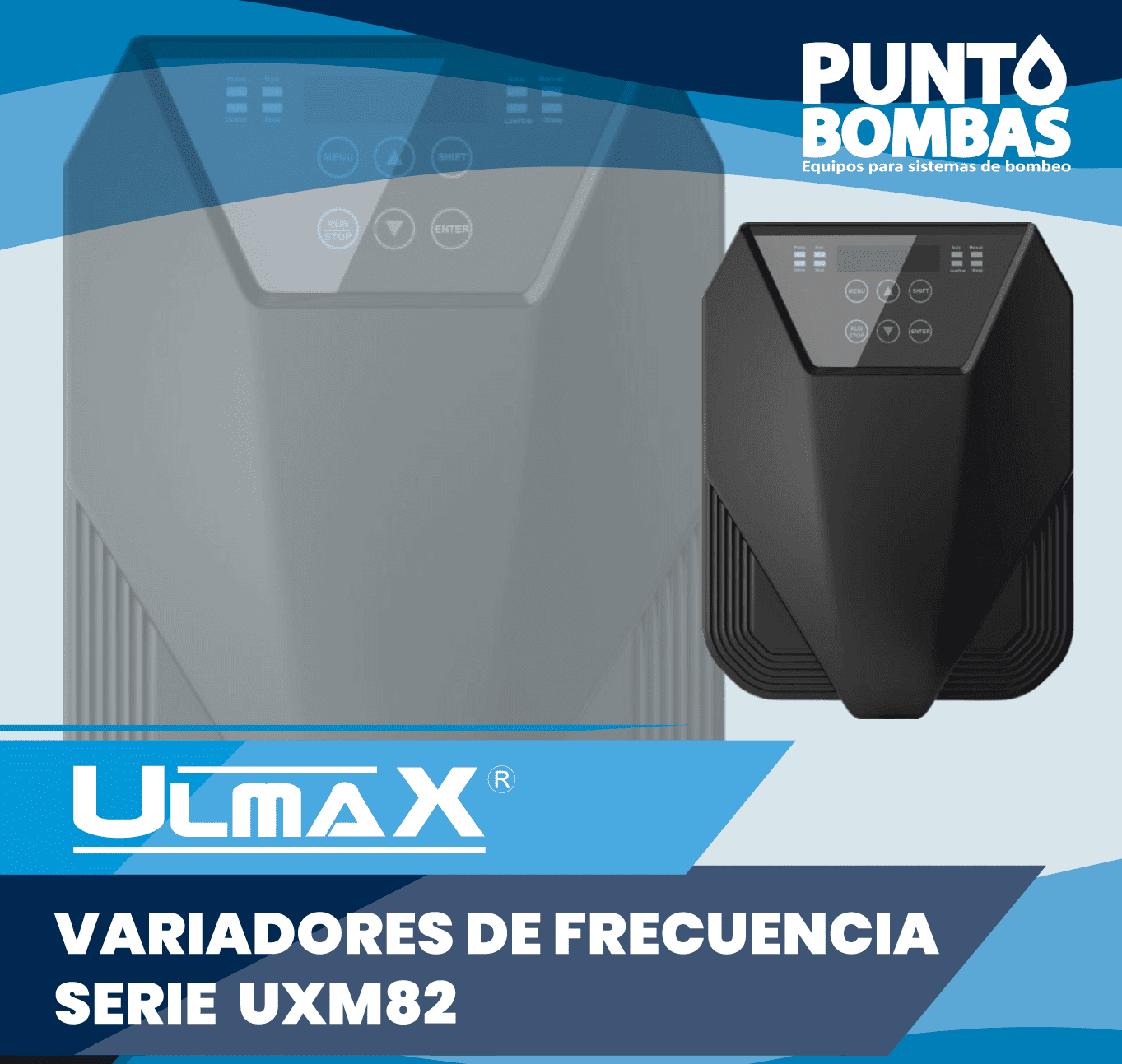 La serie UXM82 de variadores inteligentes para bombas de agua, son productos diseñados para un alto rendimiento en sistemas de bombeo, y podrán ser instalados directamente sobre las bombas y equipos, el cuerpo de los equipos tiene un nivel de protección IP54 y es adecuado para ambientes húmedos y polvorientos. El producto utiliza el último chip de control diseñado para la serie, el cual integra control sincrónico y asincrónico de imán permanente. El algoritmo de control está más optimizado. El producto cuenta con comunicación estándar de doble canal, función de enlace para múltiples bombas, modo de suministro de agua presión constante y modo de ajuste manual de frecuencia entre otros.